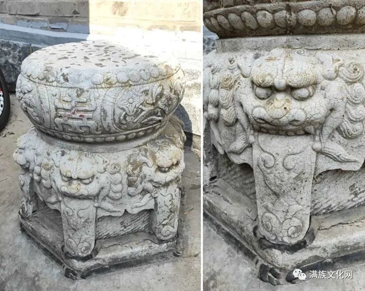 这是见过的最复杂的门墩,近似于镂空雕刻,万一拴马桩倒了,把马缰绳穿进门墩儿的窟窿里面去,同样能起到拴马桩的作用。这户人家够聪明的,一举两得。