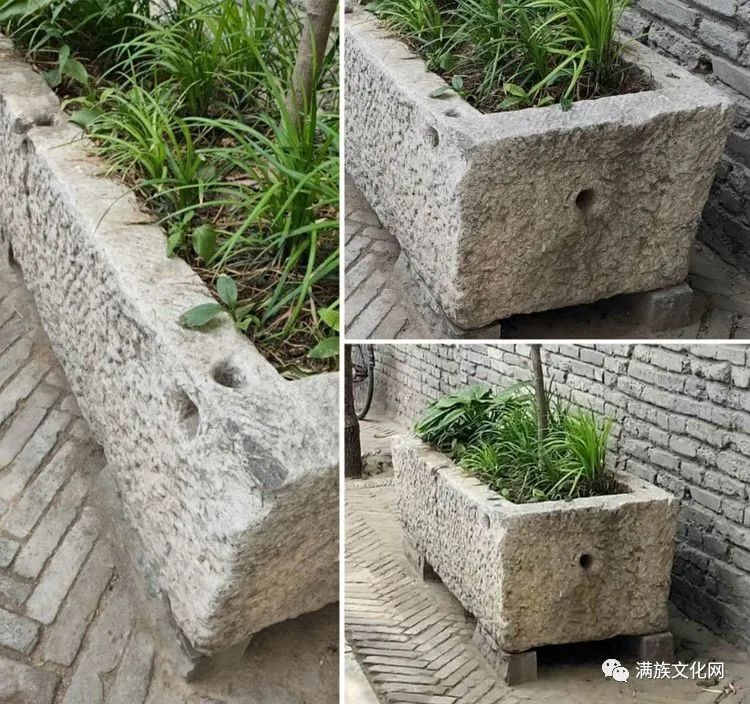 比如说下面这个喂牲口用的草料槽子,虽然不是拴马桩的样子,但是这几个窟窿照样可以栓马…栓驴……栓牛………拴骡子。