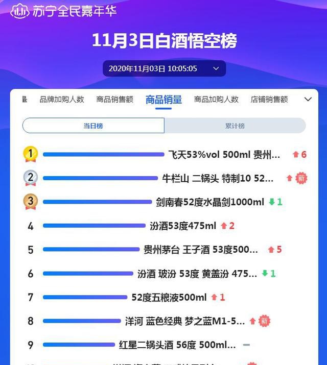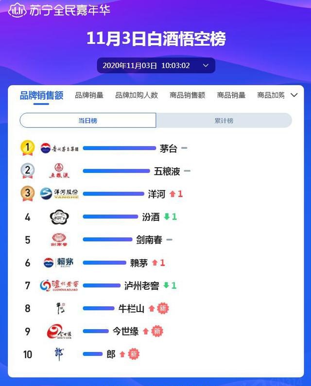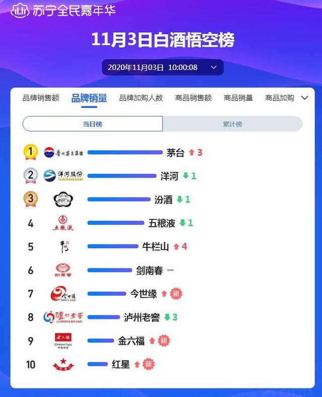 值得注意的是,随着时间进入11月份,苏宁易购双十一大促也拉开帷幕,对于喜欢白酒的朋友们来讲,苏宁超市的各款白酒又成了心头之好,不趁着机会多囤几瓶,好像11月份就白过了似的。那么各大品牌谁家卖得多、人们最喜欢喝什么酒呢?