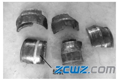 4 粒滚子表面腐蚀较严重,剩余滚子表面也有锈迹;滚子工作表面均有挤压变形痕迹( 图 3) 。保持架表面腐蚀严重,其中一件已断裂( 图 4) 。