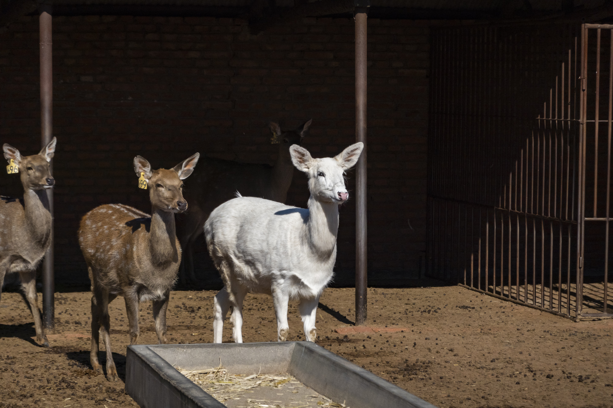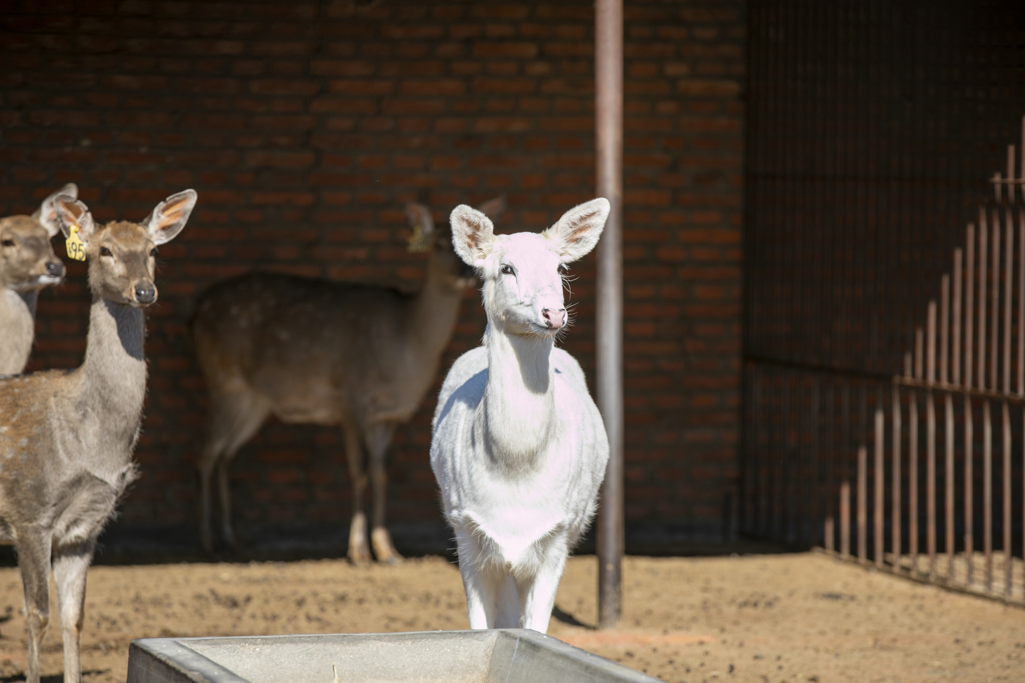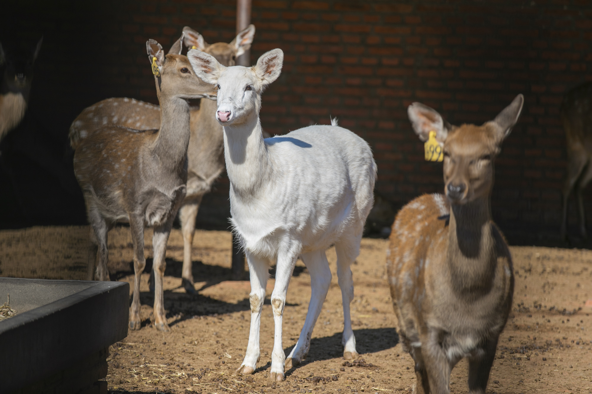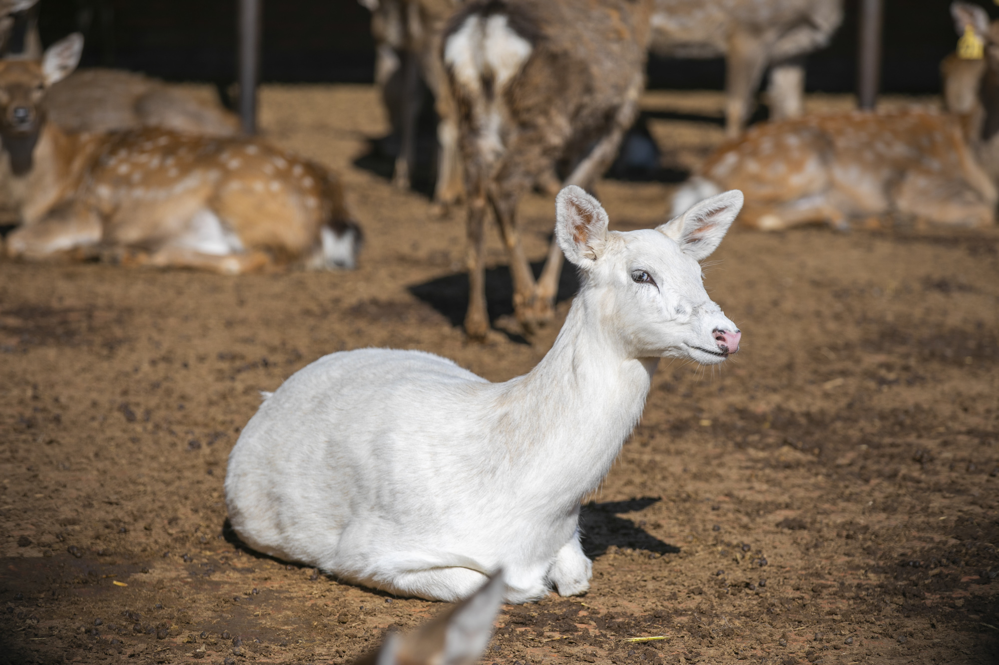 眼前这只白鹿,看起来非常的温顺,在阳光的照射下,它身上的毛发白得发光。养鹿大哥告诉我,这是头母鹿,它的父母、兄弟姐妹都不是白色的,它的子女也没有白色的。因为太罕见了,许多游客到此都争相和白鹿合影留念。