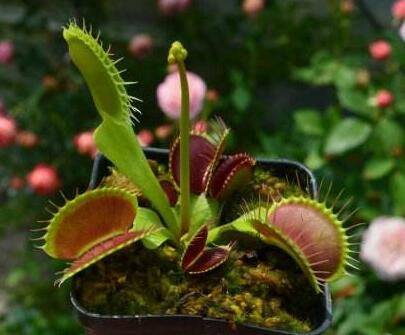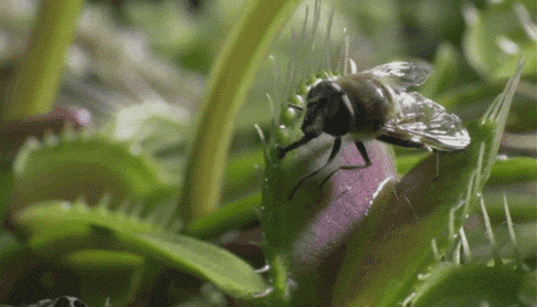 用夹子捕食可以算是食虫植物中最吸引人的一种捕食方式了。夹子状的捕虫器不仅长相吓人,而且捕起虫来动作敏捷,很多人家里养着捕蝇草,还执着于喂它口香糖、芥末之类奇奇怪怪的东西,来观察它的反映。