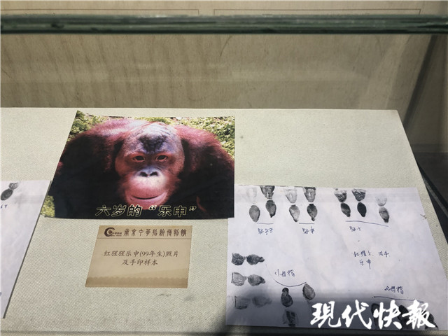 博物馆内,还有一份非常珍贵的藏品——国内首个人工繁殖的红猩猩乐申的指纹。要说乐申,那可是动物界的网红带头人。1999年5月27日出生,乐申出生在南京的红山森林动物园内。馆内的这套完整的指纹,也是在乐申出生不久后按捺的。陶建伟表示,这套指纹非常有意义,很少有人知道,猩猩的指纹与人类的有97%的相似度。