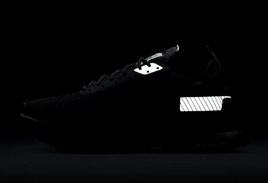 采用类翻毛皮革打造鞋面,侧身镂空波点 Swoosh Logo 点缀,后跟以醒目 3M 贴装饰。暗光下呈现出非常亮眼的反光效果,减速带格纹样式!