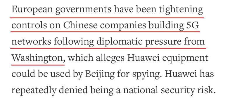 中国社会科学院欧洲研究所研究员赵俊杰也指出,美国插手此事,是有自己的战略意图。此前,美国官方还曾想要控股爱立信,甚至控股诺基亚,让美欧真正在电信领域形成“跨大西洋电信联盟”,一致对抗华为等中国企业。