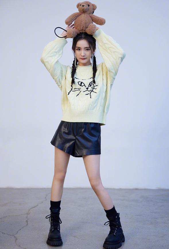 杨幂真的太钟情毛衣搭配短裤的穿法了,你们觉得怎么样呢?