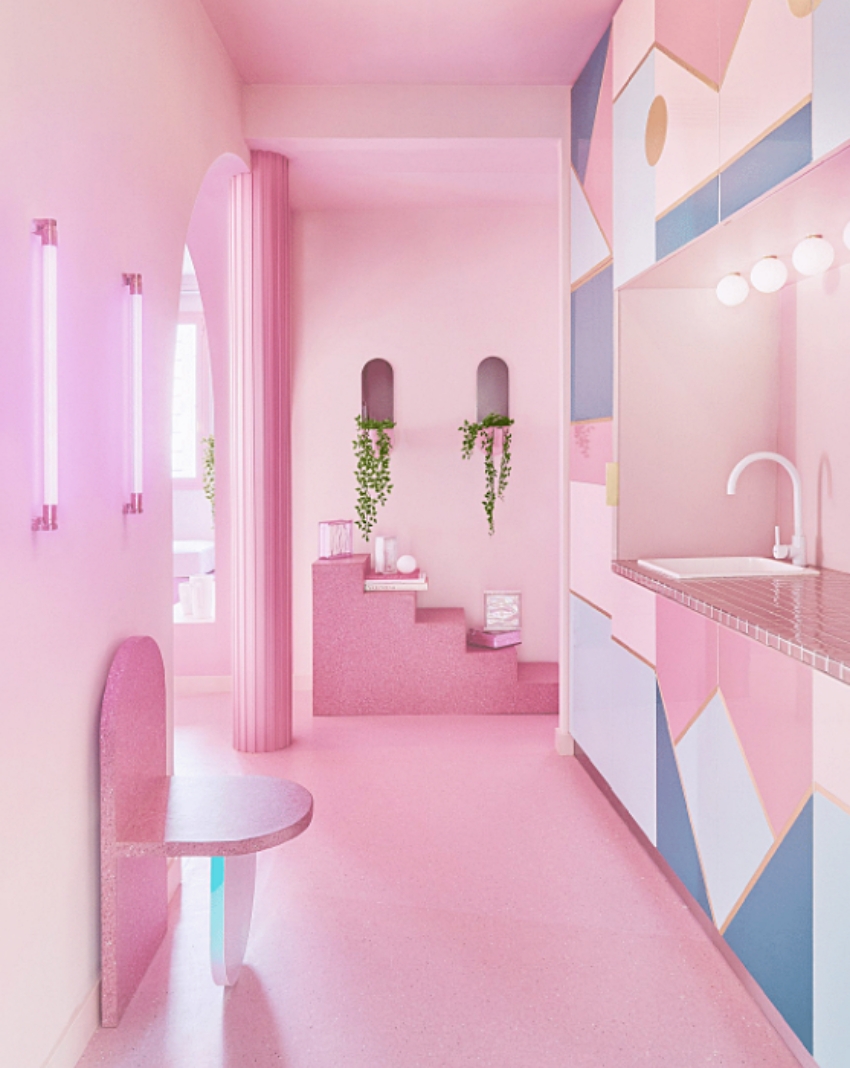 若你也是爱好粉色的狂热者,不妨从西班牙的出租公寓寻找灵感!为了摆脱以往常见全然黑白的空间体,设计团队于仅有52平米的空间中,大胆挥洒12种不同浓淡的粉红色,透过不同材质与彩度堆叠,创造出简洁、明快且具有摩登感的前卫场景。