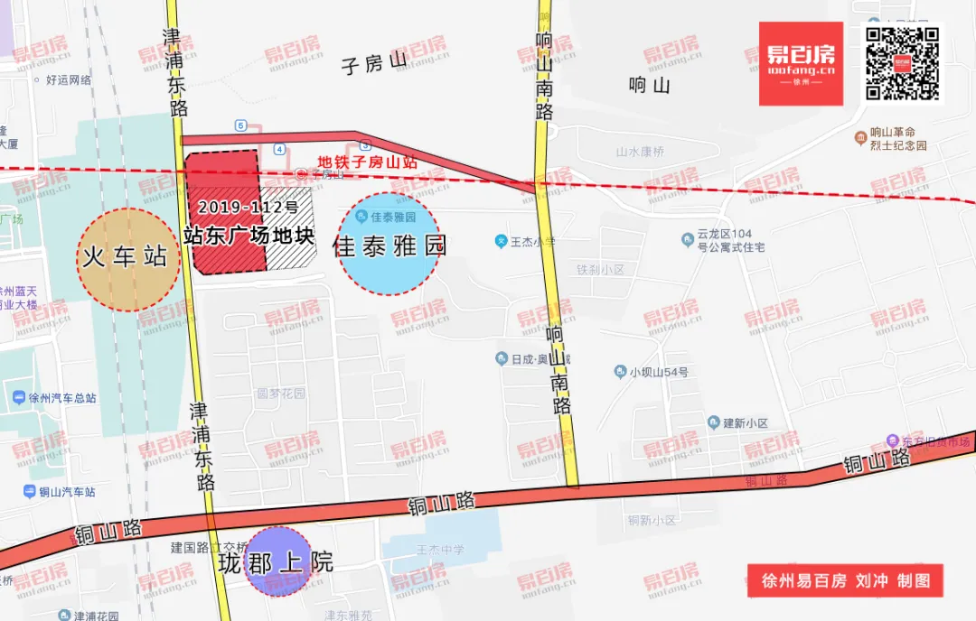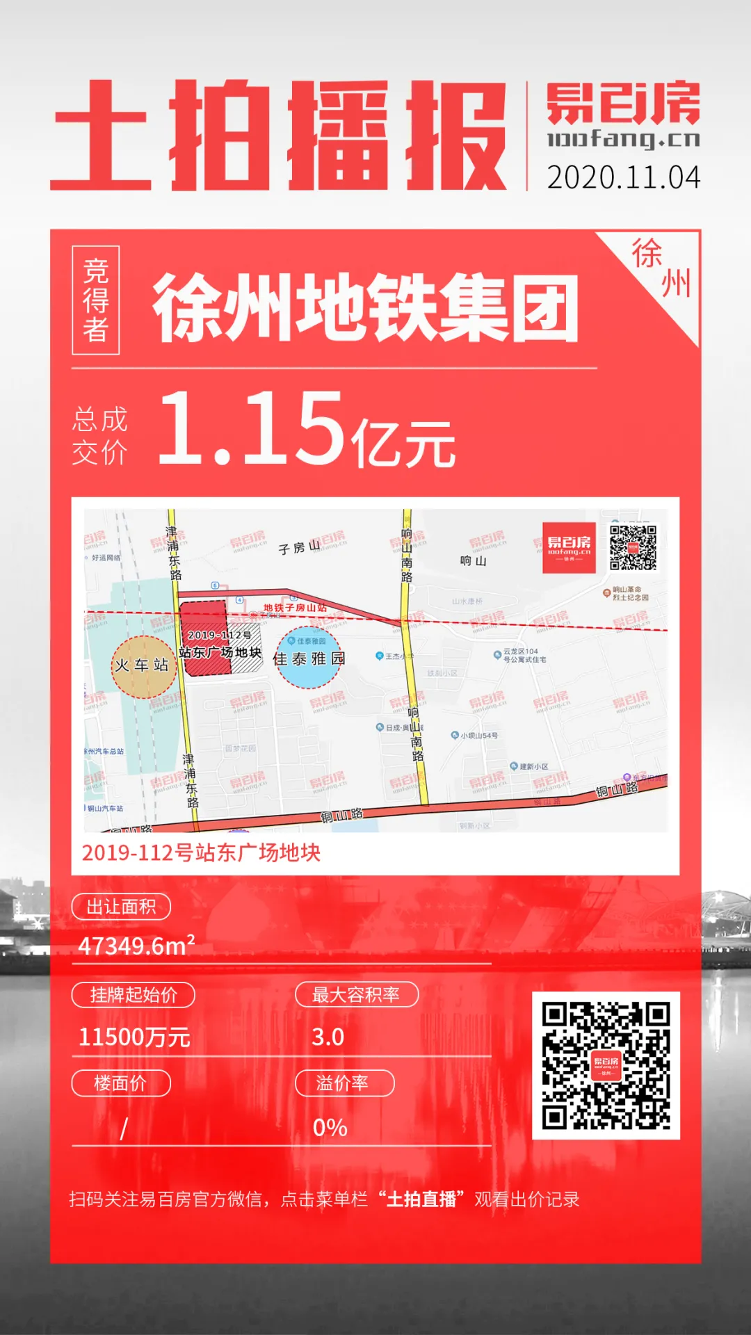 今日出让的另一宗地块2019-112号站东广场地块则是以底价1.15亿元被徐州地铁集团摘得。