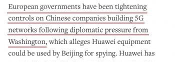 瑞典此番以“国家安全”为由对华为出手的同时,还有其他几条信息值得留意,一个是一贯秉持“中立原则”的瑞典近期国内不断有呼声要加入北约;另一个是,瑞典萨博集团与美国军方签了7.7亿克朗(约合8650万美元)的军售合同,向美国出售武器。另外瑞典出台对华为设备的禁令后,美国驻瑞典大使表示“高兴”。