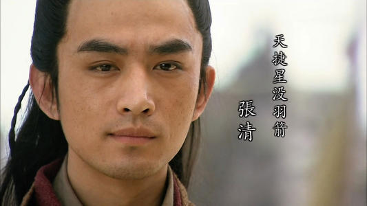 张清出现在《水浒传》的第七十回。他是一百零八将中最后一批上梁山的。张清是虎骑出身,特长是用飞石打人,百发百中,人称为“没羽箭”。梁山泊好汉去攻打东昌府时,张清出阵抵抗,接连用飞石打伤了梁山泊一十五员大将。像鲁智深这样武艺高强的人,也被他的石子“打得鲜血进流,望后便倒”。正牌武官出身的杨志遇上他的飞石,也吓得“胆丧心寒”。