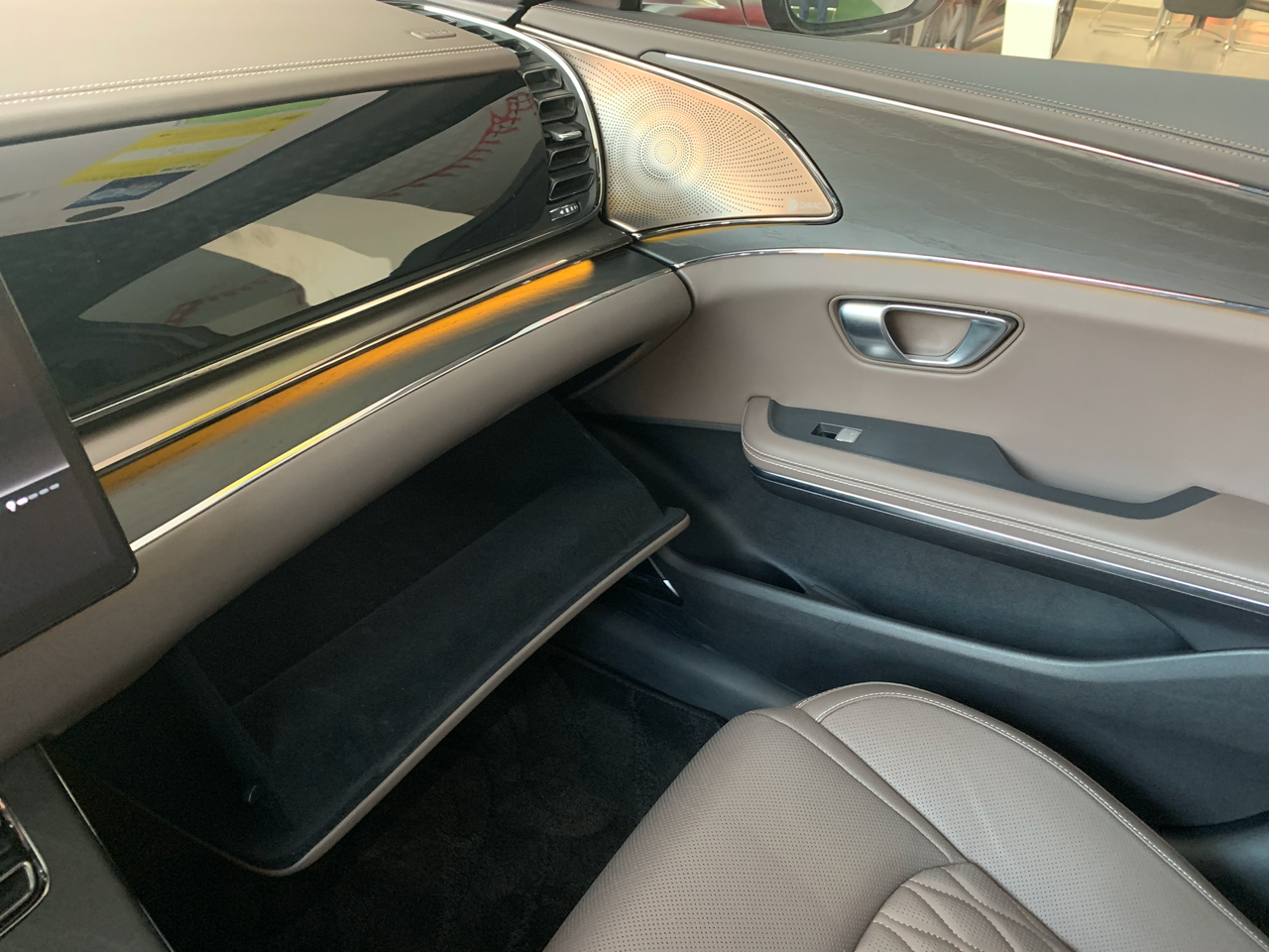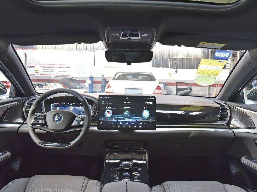 你会为它的内饰豪华程度而感到惊讶。真皮座椅、大面积软料包裹、大尺寸中控屏幕、宽敞的天窗以及智能娱乐系统,很难想象这是“国产车”。其中可旋转的大屏幕是一个亮点,熟悉特斯拉的消费者会认为是“模仿”,但很酷。