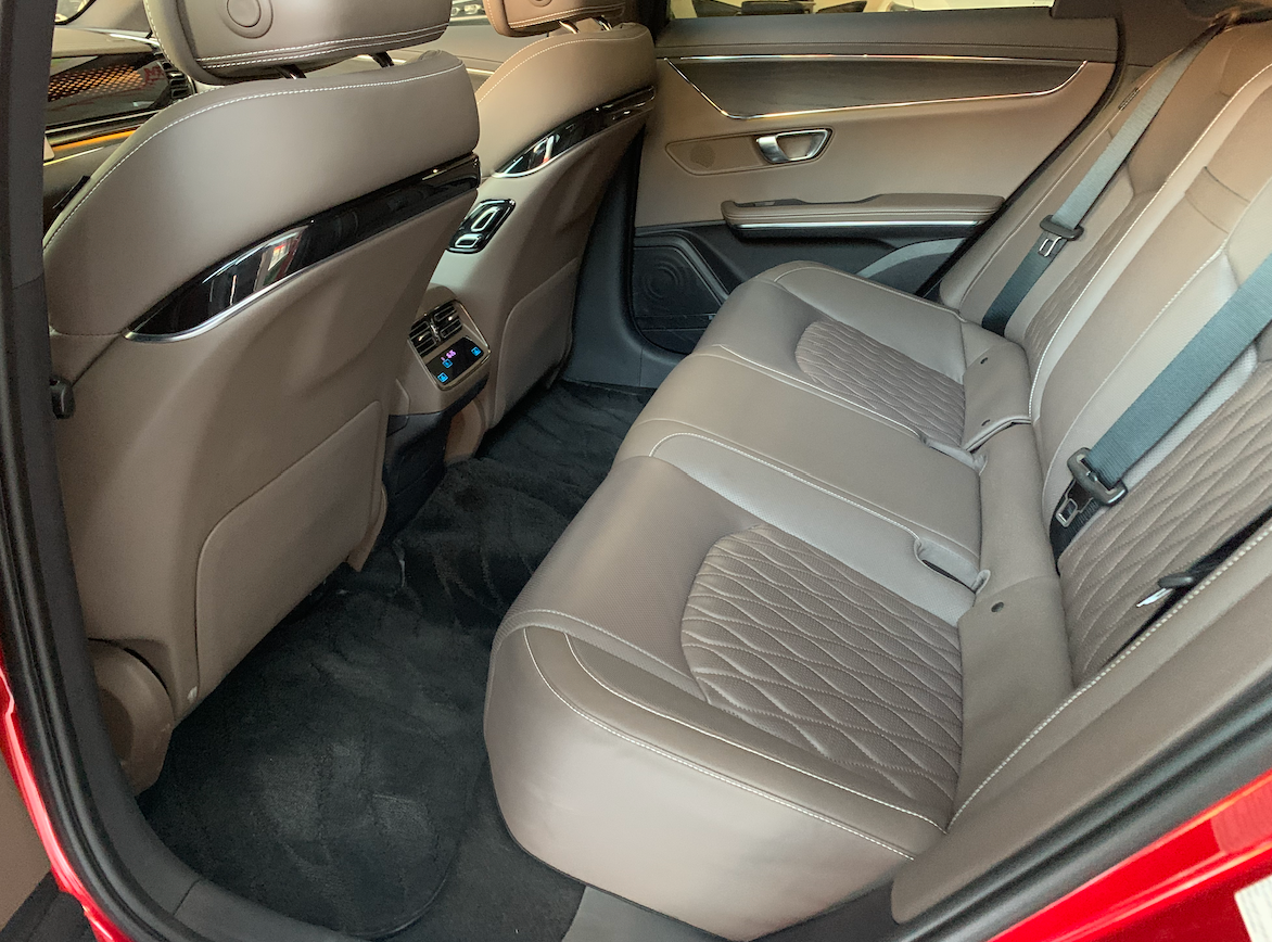 正如所见,比亚迪汉EV很宽也很低,但2920mm的轴距很好保障了乘坐的舒适性。比亚迪后排设计得很好,座椅符合人体工程学。