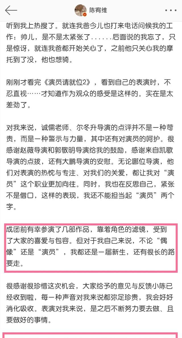 在这个细节中,其实我们能看到,陈宥维是求上进的,他想当个好演员,而不是只当个爱豆。