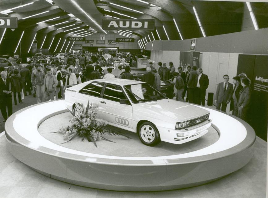 1977年,奥迪技术主管费迪南德·皮耶希发现大众Iltis越野车的四驱系统在复杂道路上拥有非常优秀的通过性,于是向公司建议将其四驱系统引入到奥迪轿车上来。经过三年的秘密研发,奥迪公司成功掌握了轿车四驱系统的技术,并把它装备在一辆基于奥迪80底盘打造的双门轿车上。