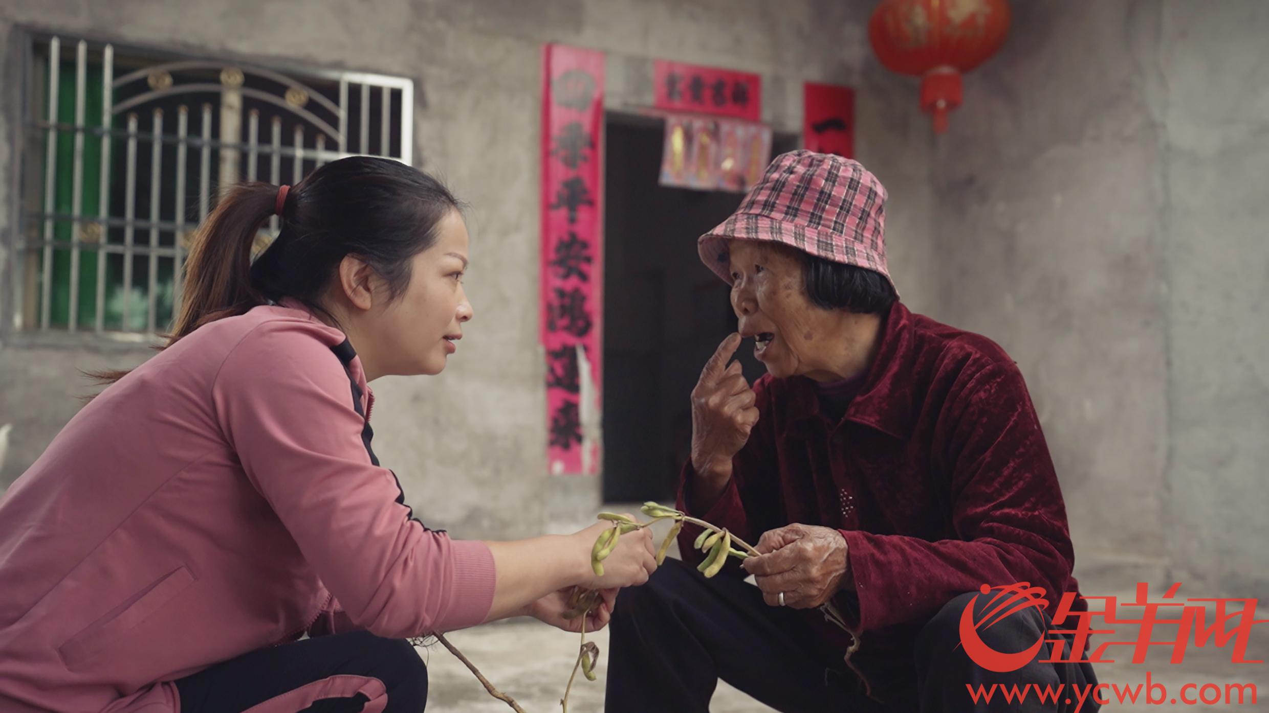 上门推广智慧医疗项目时,平湖村村干部曾枚珍与村民对话