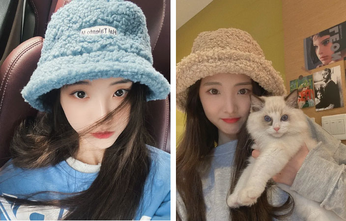 除了小配饰,论对毛绒帽子的热爱,neinei郑乃馨排第一应该没人排第二~都是渔夫帽同一个款式不同颜色都要集齐!从温柔的奶茶色到清新的婴儿蓝,羊羔毛的质感自带甜妹气质~