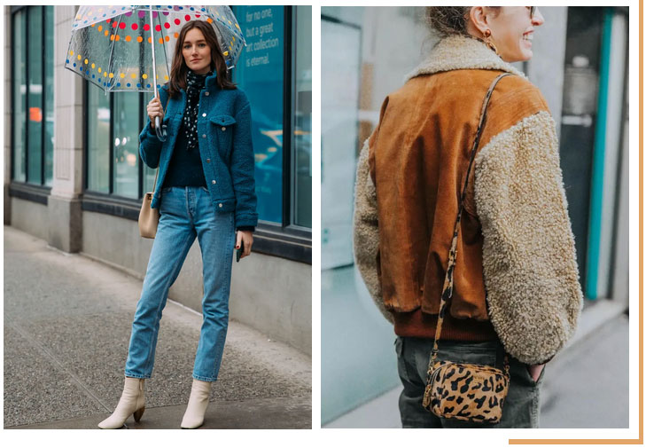 短款的毛绒外套可以说是百搭单品!宽松又具有膨胀感的外套搭配一条紧身的leggings,绝对能一秒打造出长腿星人效果,不信可以试试看噢。