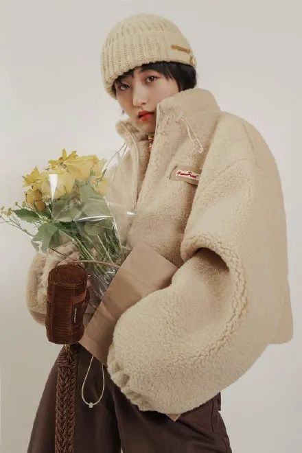 除了细腻的毛绒,质感更粗的羊羔绒可爱程度就瞬间UP UP!自带萌感,好像穿上就能变身一只小羊羔。