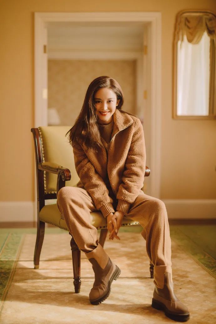 小仙女娜扎一身咖色系穿搭坐在阳光洒落的房间内,满是秋冬的复古色调。同色系不同服饰材质不仅丰富了视觉层次感,简洁里更多了份优雅。半高领毛衣搭配翻领短款毛绒外套,毛绒绒的质感自带温暖属性。宽松的针织长裤,裤腿塞进直筒切尔西靴内,利落中又多了份帅气。