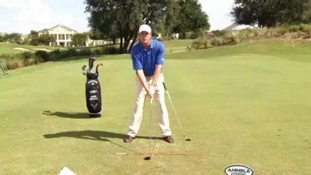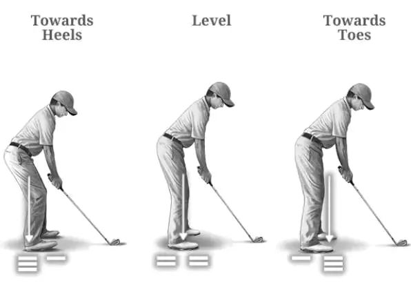 我们先来说错误的重心会造成什么影响。假如身体重心处于脚跟,那在挥杆时就很难做出正确的重心转移。