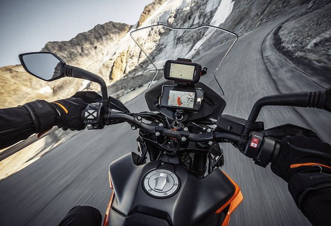 890 Adventure外观与继承了KTM Adventure系列的家族化设计特色配备标志性的“分裂脸”,5英寸的全彩色仪表处于高大的挡风后面。新的890 Adventure中还加入了几种有用的电子辅助配置。有牵引力控制,弯道ABS,越野ABS,不同的骑行模式等等。