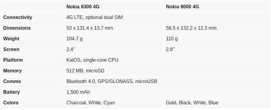 11 月 6 日消息 诺基亚 6300 和 8000 即将回归,据NokiaPoweruser报道,传闻这两款手机将搭载 KaiOS 手机,都将是 4G LTE 手机,拥有双 SIM 卡版本。