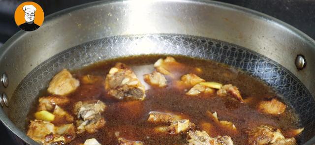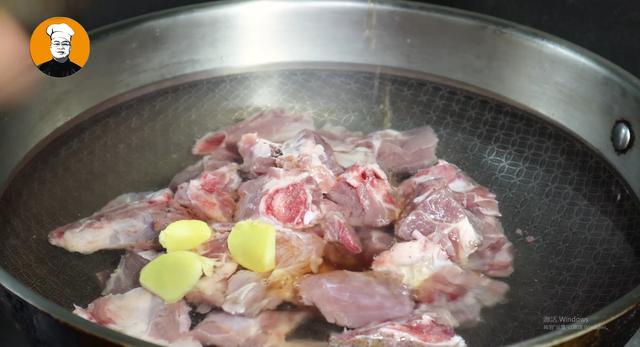 5、锅控干后倒入油,放入冰糖炒糖色,炒制呈枣红色时,放入排骨翻炒,翻炒上色以后再放入姜片爆香,淋入老抽上色、生抽增鲜,盐一勺,然后放入漫过食材的开水,盖上锅盖大火烧开,中小火慢炖20分钟