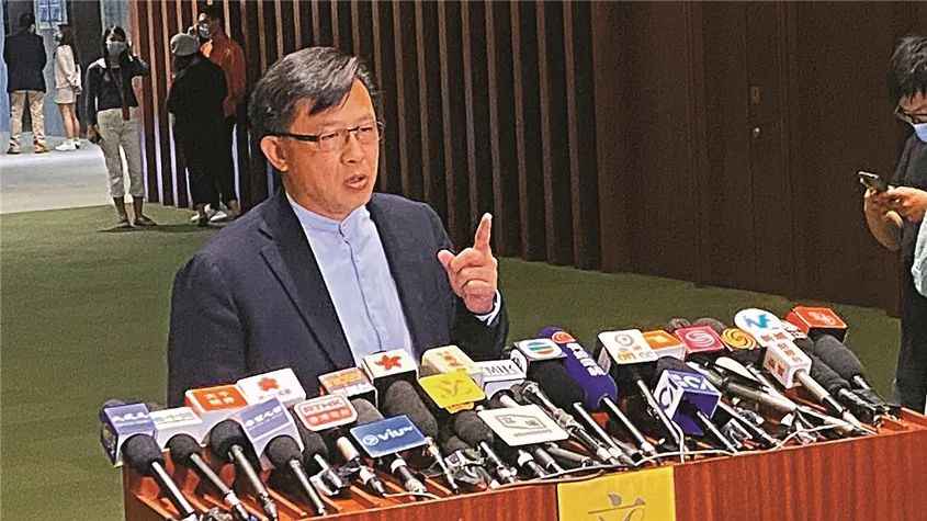 图:立法会议员何君尧表示,已去信行政长官林郑月娥及律政司,要求政府撤销民主党许智峰、林卓廷的议员资格
