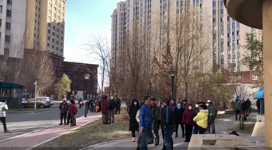 哈尔滨市阳光家园小区内聚集了很多居民。