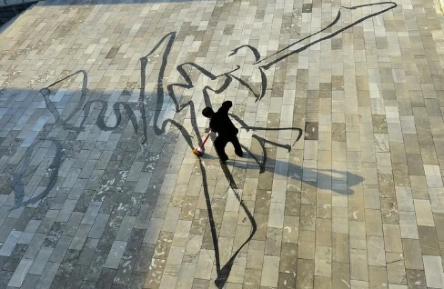 小和大,是我双钩书法的两大特色,小,一个字可以到0.2平方厘米,不借助放大镜,全凭手指感觉书写,2015年珠海博物馆展出的就是小字书写的《心经》挂件;大,一个字可以到两百平方米,一气呵成,一个字的完成,相当于200米跑步。2014年,我在孔学堂书写180平方米“义”字,黔中早报整版报道,2015年,我在人民广场书写120平方米”义”字,贵阳电视台报道,成为大字书写经典。