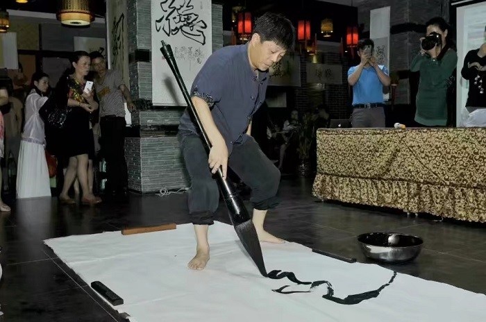 刘杨:有趣之一是拜师。2017年4月,广东惠州何家劲公司酵素产品发布会,我现场表演双钩书法,吃饭时,一20多岁小伙子跪着敬酒拜师,言辞恳切,我没敢答应;2018年乌当一40多岁书法爱好者也跪地敬酒拜师,我更不敢答应,书法路上,自己还是学生,哪有为师资格?只是,对于女性拜师,就有些手足无措了。一位是平安公司美女经理,我为她们团队做过演讲和书法展示,她的拜师是霸王硬上弓,不管是否同意,直接公开宣布她是我的徒弟。另外一位是有着马来西亚履历的古意女子的文化拜师,她喜欢我文字里的硬朗婉转,也喜欢我书法线条的婀娜空灵,她的拜师,更多是灵魂层面……