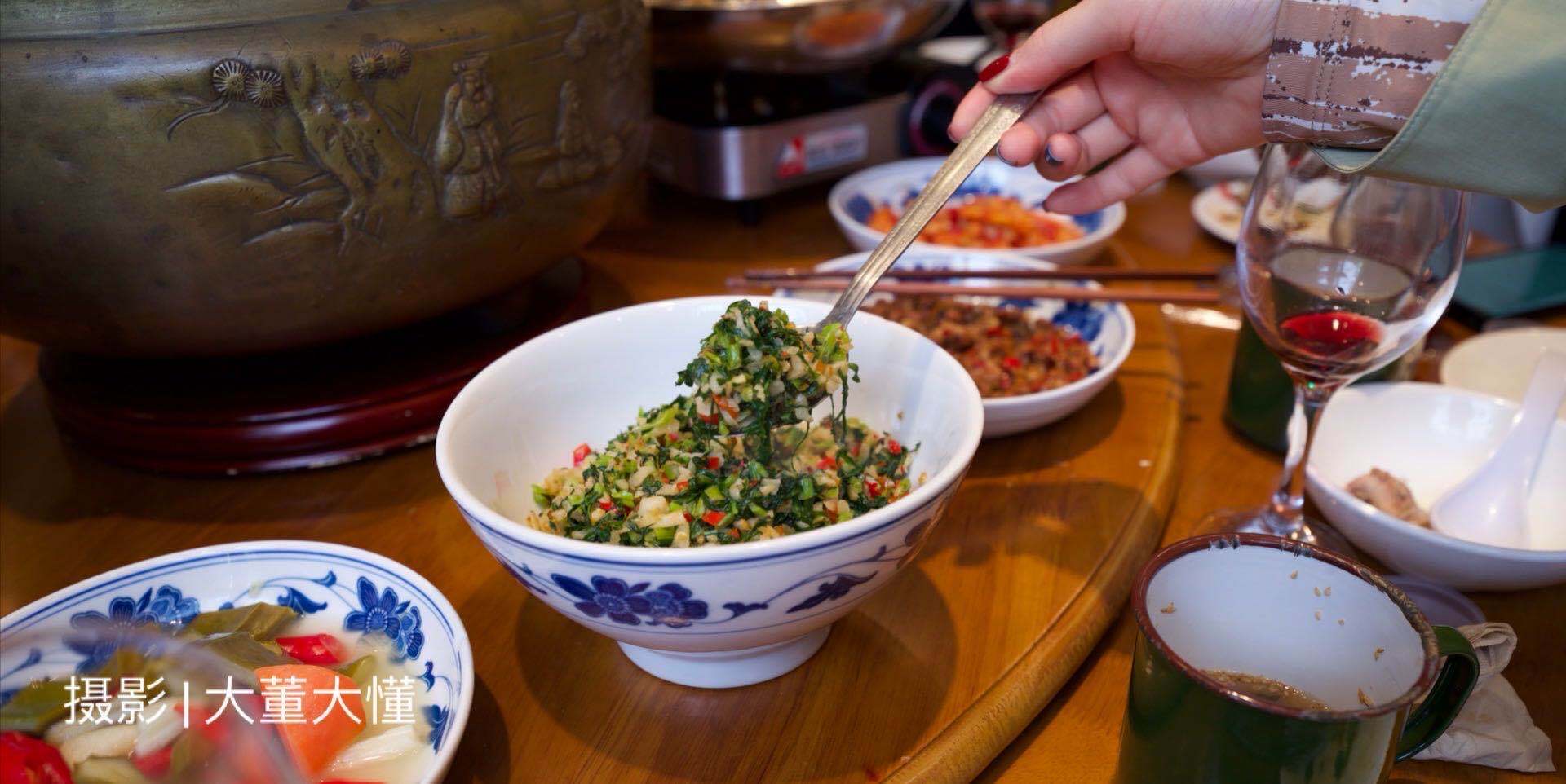 等大家吃过后,我再夹起锅底里的老腊肉,口感酥化,强劲有力,浓郁的像在品味沈从文笔下《边城》的故事。