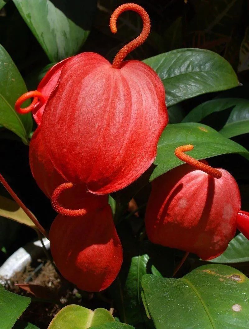 而植株矮小,花量比较多的红掌品种,就比较适合作为盆栽观赏品种,这种一般被称为红苞芋(Anthurium scherzerianum)。