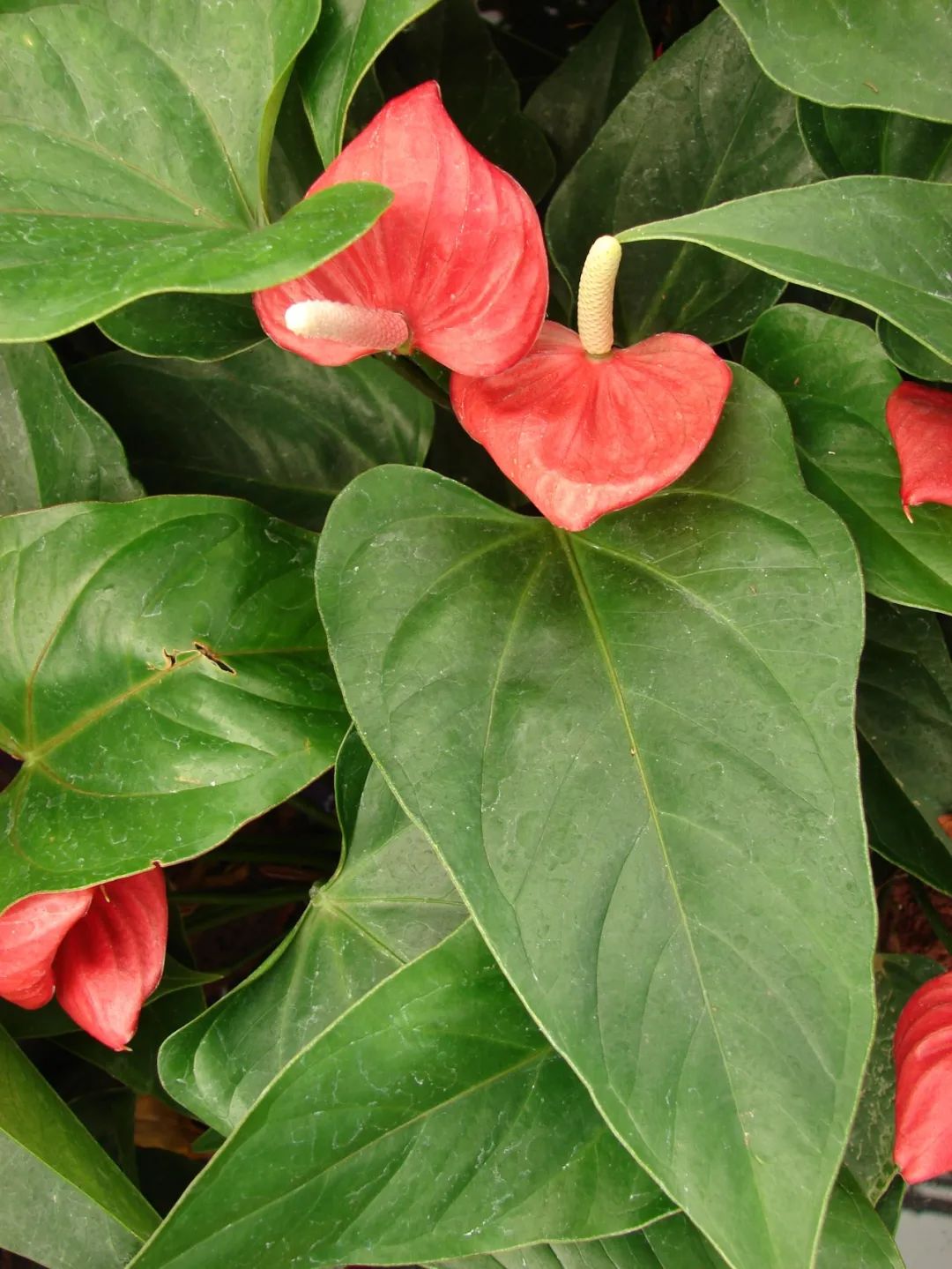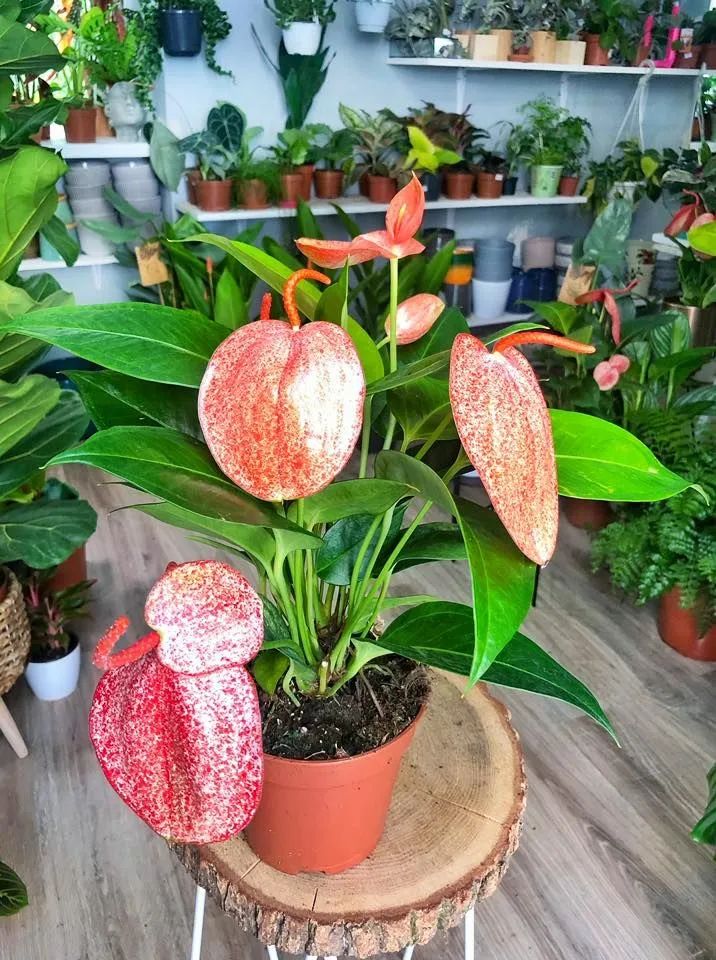 红掌也是分不同的种类的,一般就分为四大类,第一类就是是作为切花的,植株特别高大,花量是比较少的,但是花朵特别大,花梗特别高,就很适合作为切花,就是被有些朋友区别于红掌的“火鹤花”(anthurium andraeanum)。