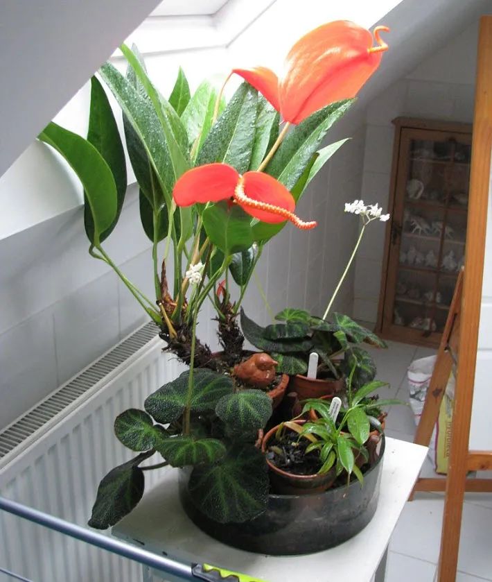 红掌(火鹤花)是原产于中美洲地区,是全世界都很流行的一种热带花卉,它特别害怕寒冷,冬季养护温度保持在10度以上最好,温度低很容易冻伤。