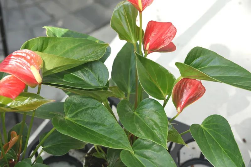 红掌是一种耐阴植物,可以养在室内光线明亮的地方,也能维持存活。但想要让它开花,每天需要补充较多光照,每天最好有4~6小时以上的阳光照射,但是要避免过度暴晒,否则叶子会被晒焦,叶子会出现一些难看的晒斑。
