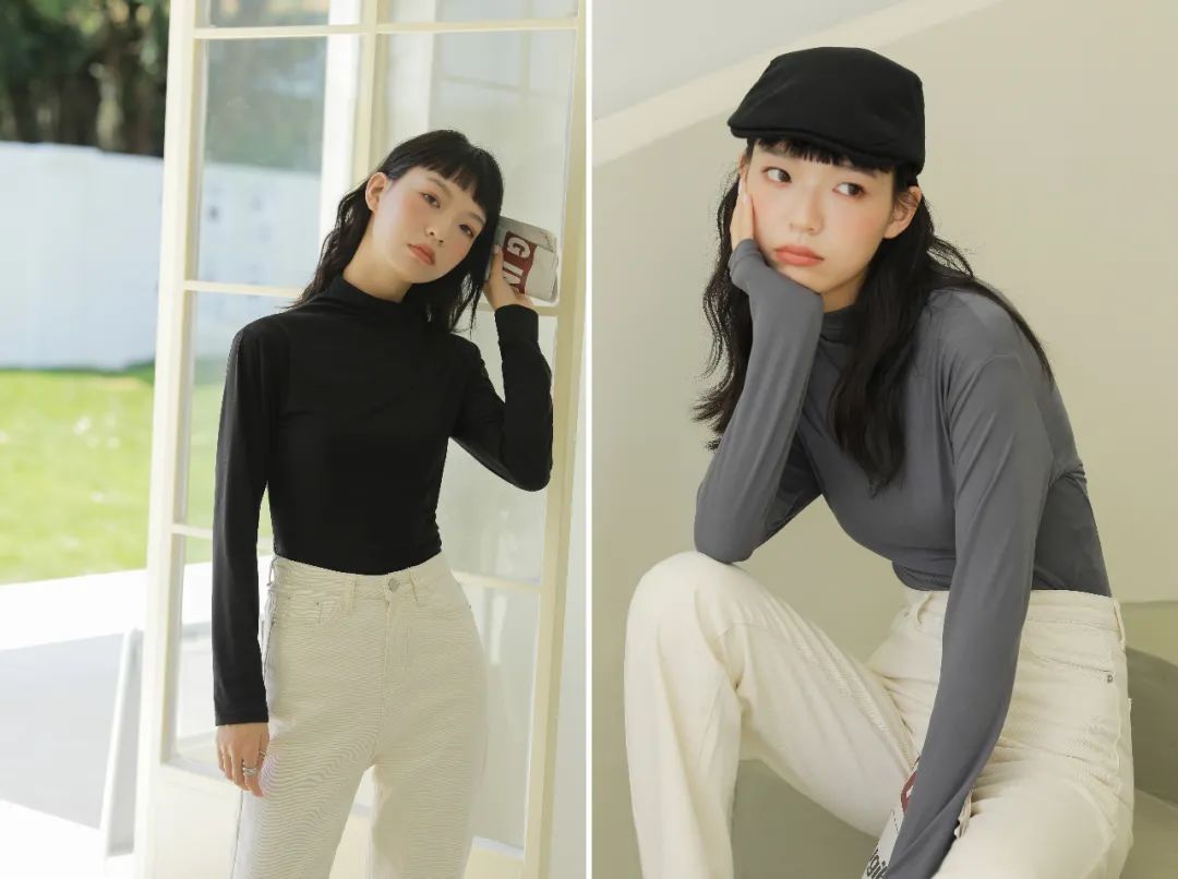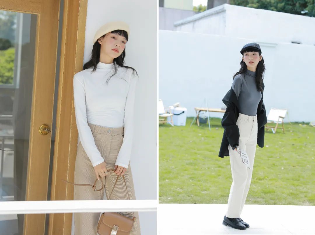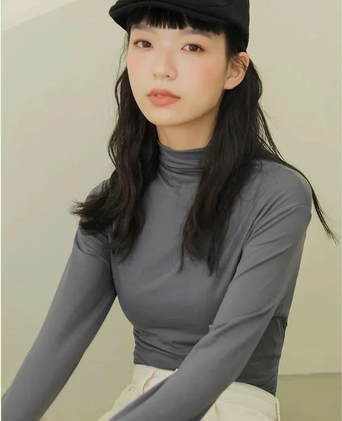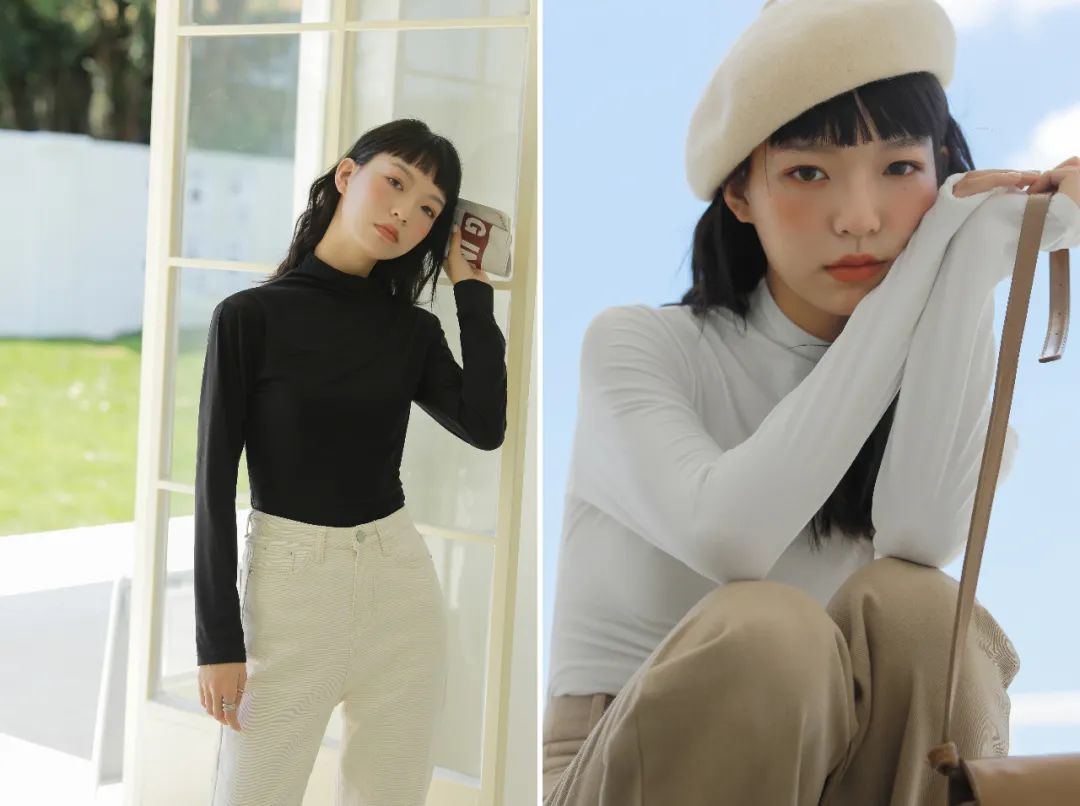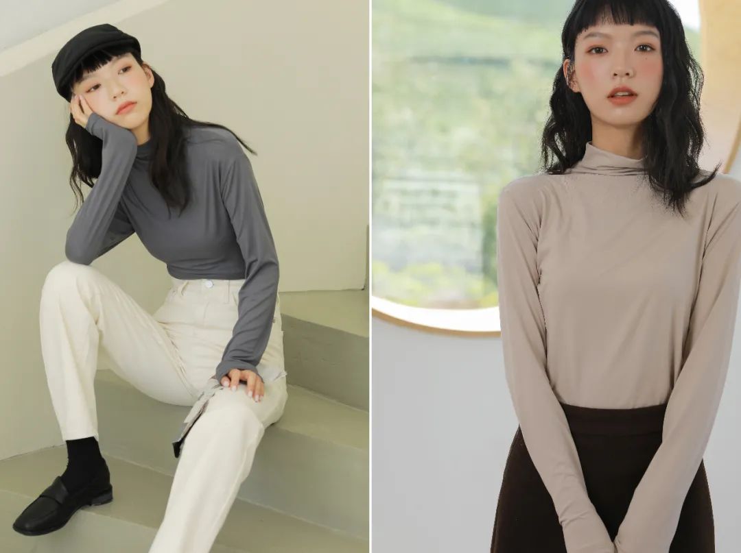 而这款半高领就刚刚好,领子的褶皱还有恰到好处的设计感,外穿不会给人“穿秋衣”的印象,反而非常时髦~