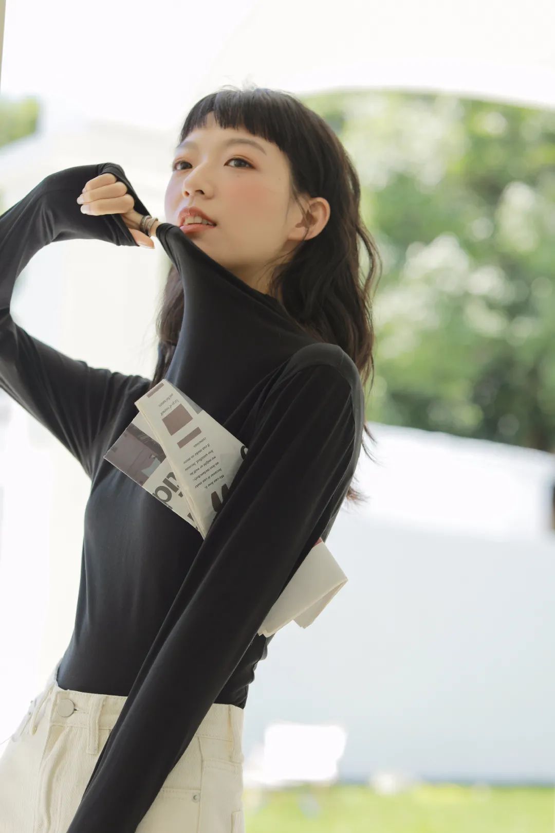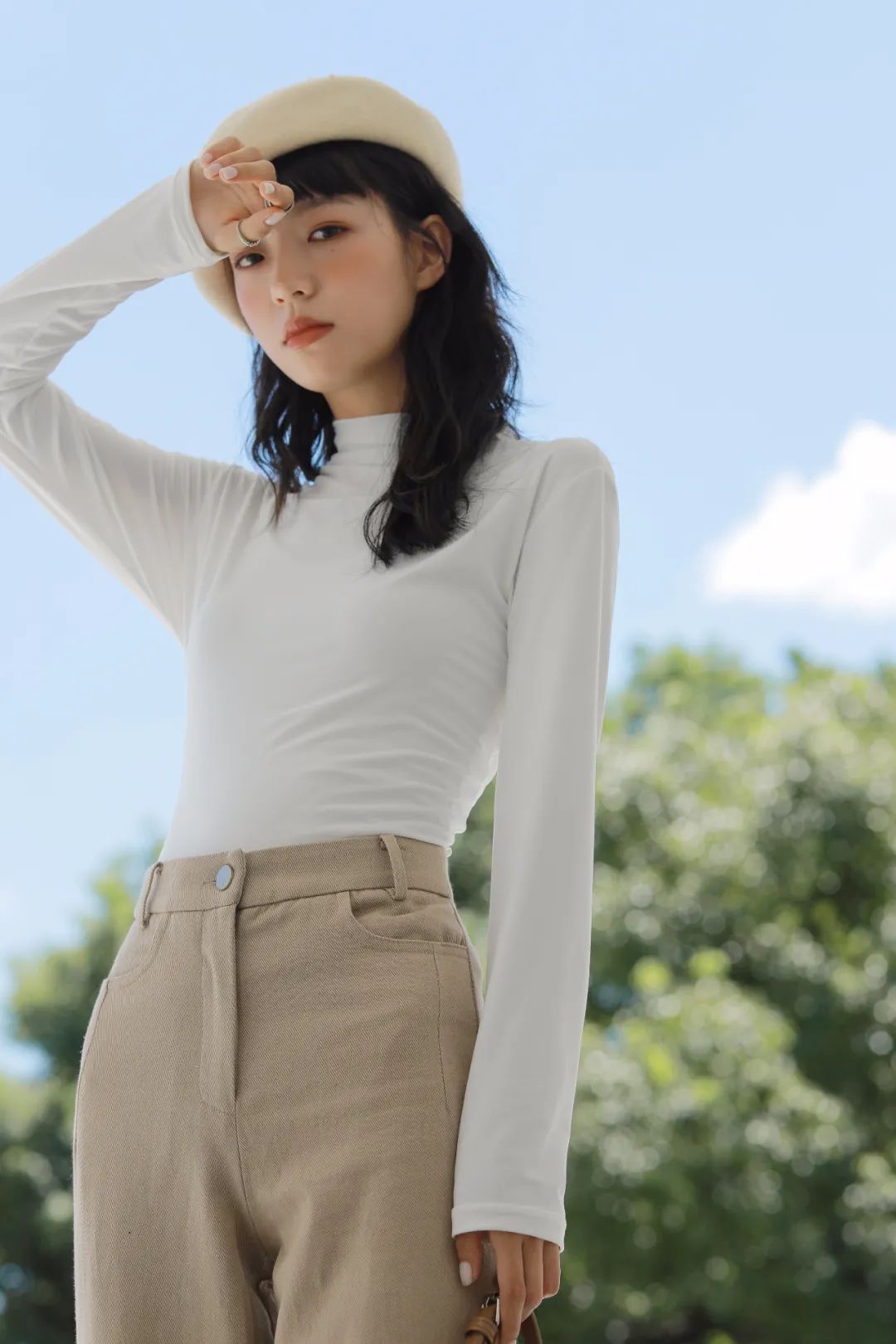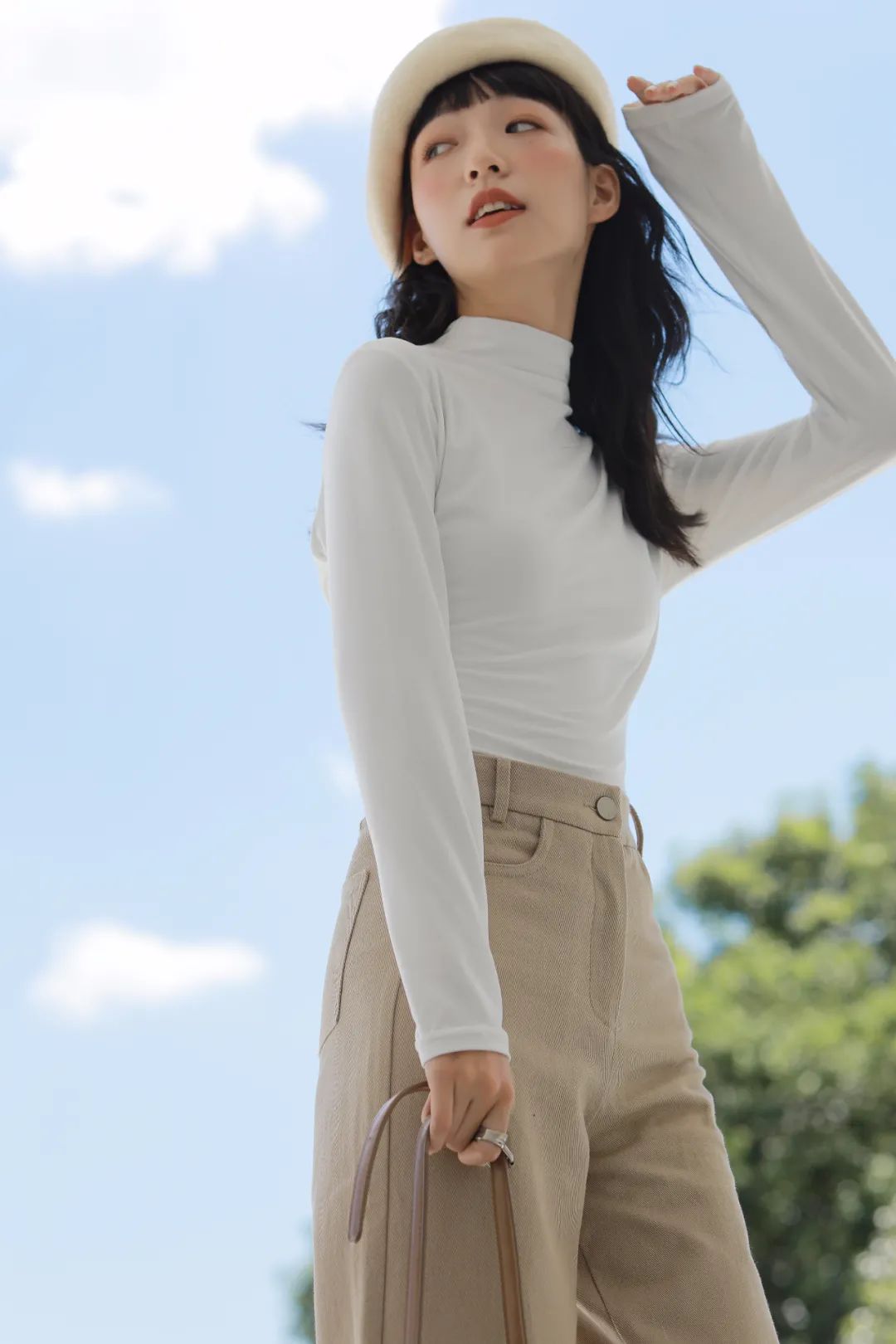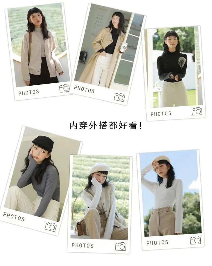而这款半高领就刚刚好,领子的褶皱还有恰到好处的设计感,外穿不会给人“穿秋衣”的印象,反而非常时髦~