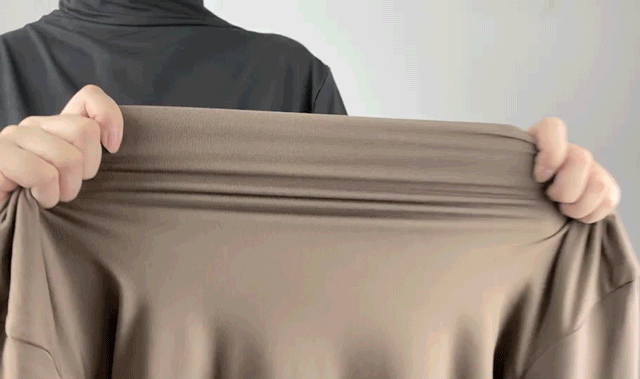 大力拉扯不易变形,松开后立马恢复原状,穿上身也没什么束缚感。