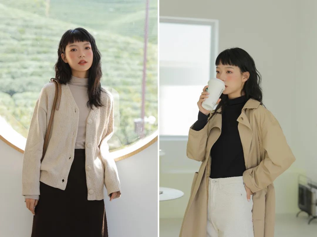 时尚的莫兰迪色系之深灰色、浅卡其,穿上它秒变优雅气质范。
