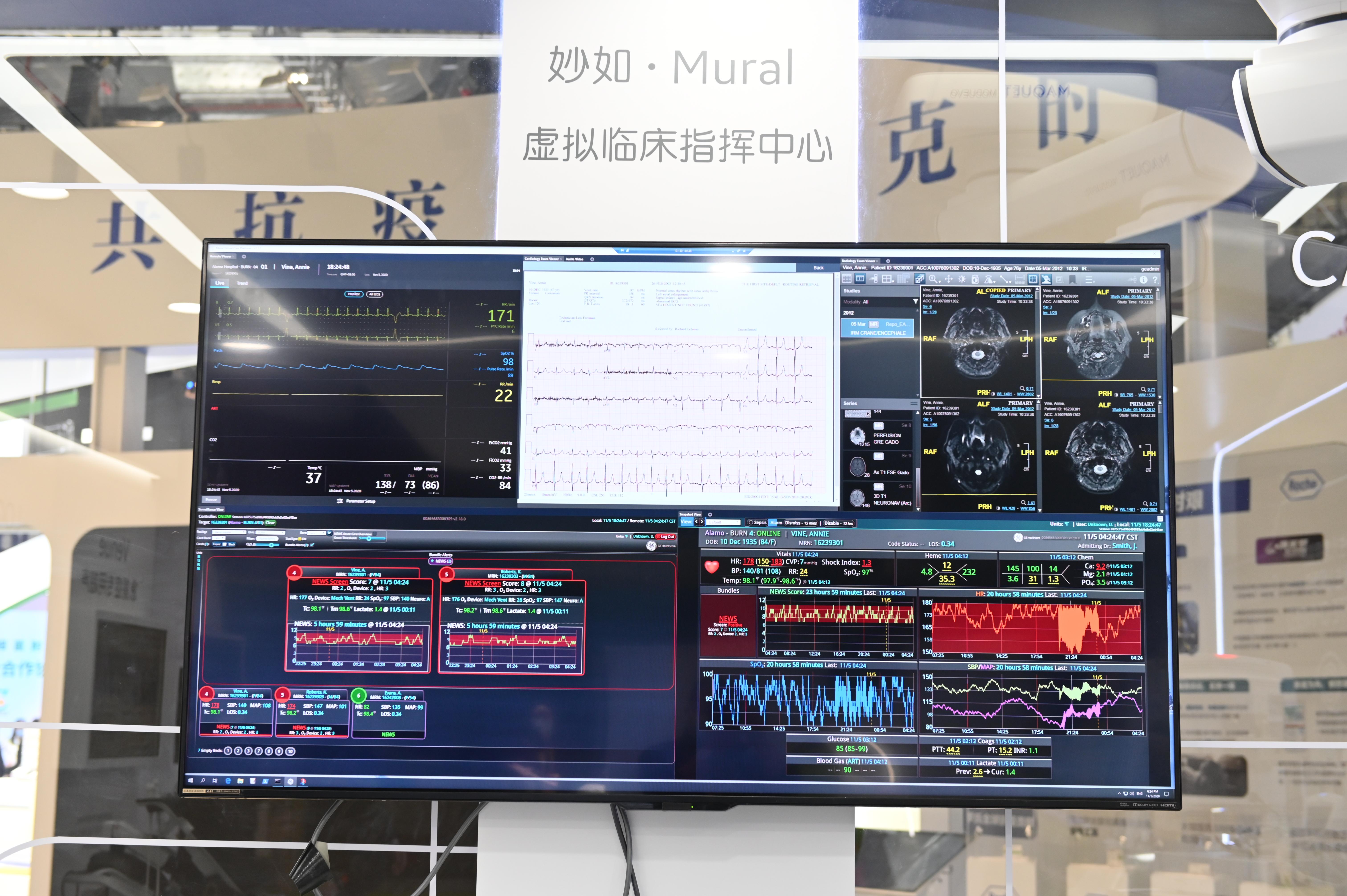 36氪近距离探访了解到,GE医疗在今年进博会期间展出了多款产品,包括可运用于ICU中的“妙如”虚拟临床指挥中心(Mural)解决方案(以下简称:“妙如”)、极T磁共振精准医疗影像解决方案(以下简称:“极T”)、人工智能APEX CT、可将早筛提前5周的 Voluson E10 高端妇产超声、和基于Edison数字智能平台的多款数字医疗应用等。