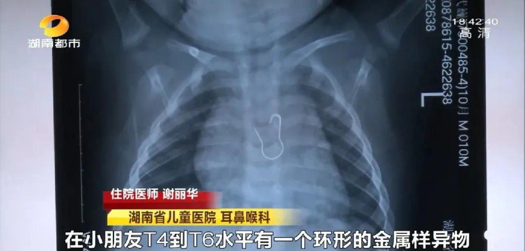 湖南省儿童医院 耳鼻喉科 住院医师 谢丽华:如果不及时取出,一直扎入嵌入的话,会有持续性的影响,时间久了随着吞咽,可能会扎的更深,甚至旁边的位置有主动脉弓,有可能引起大出血的情况。