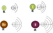 卤素是活泼的非金属元素,如下图所示,卤素最外层都是7个电子,结构的相似性决定了化学性质的相似性,导致碳卤键(C-X)成为一个极性共价键,在极性试剂电场的诱导下极化,导致其容易异裂而发生各种化学反应。