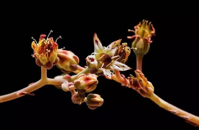 摄影的学问是用光的学问,这是摄影技术的本质性问题。摄影用光中逆光的运用是比较复杂的,正因之复杂才更有玩头。如能运用好确实会使照片产生出与众不同的效果。逆光可使被摄对象产生较强的影调反差,黑背景对于半透明的植物和花卉其透视性也会起到明显的反衬作用,突显出枝叶花瓣脉络及纹理,加之强烈的色彩对比更能表现出许多纤细之处的细节。