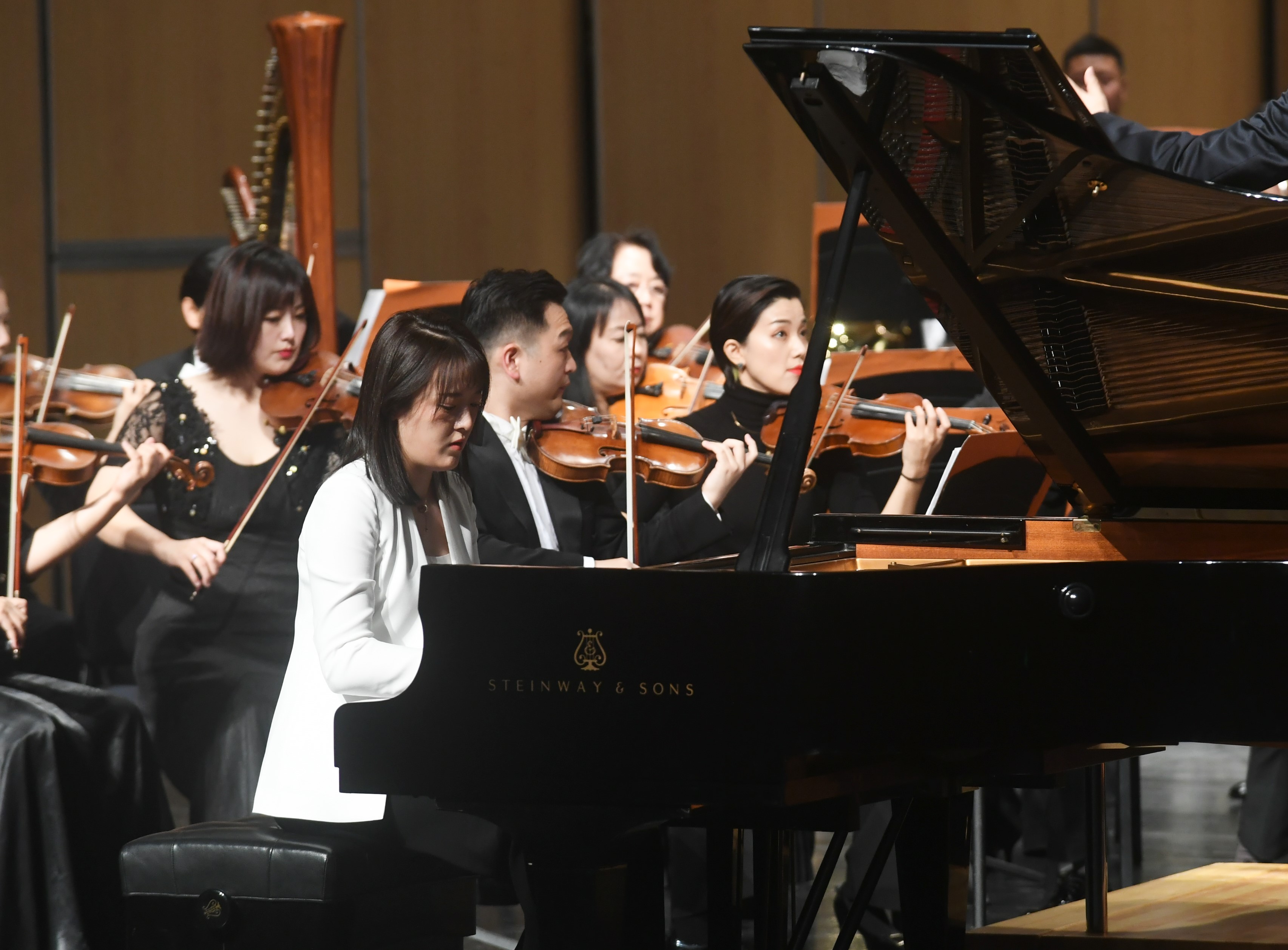 音乐会在管弦乐《红旗颂》宏伟庄严的旋律中拉开序幕。上半场,钢琴协奏曲《黄河》的亮相将音乐会的氛围推向了高潮,观众在脍炙人口的旋律中重温波澜壮阔的历史,在“黄水奔流向东方,河流万里长”曲调中体味人民安居乐业的怡然自得和日寇铁蹄下家破人亡的巨大反差。在“风在吼、马在叫、黄河在咆哮”浓郁的民族风格和高超的交响协奏中感悟中华儿女众志成城、英勇战斗,为保卫黄河、保卫全中国而奔赴战场的爱国主义赤诚。独特的艺术表现力生动地再现了游击健儿浴血奋战的悲壮历史,讴歌了中华儿女不屈不挠、前仆后继的革命精神,也歌颂了中华民族团结统一、爱好和平、勤劳勇敢、自强不息的民族意志。