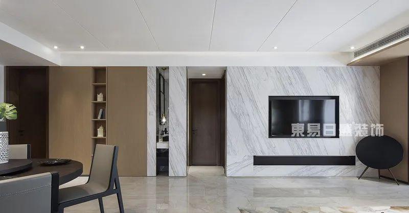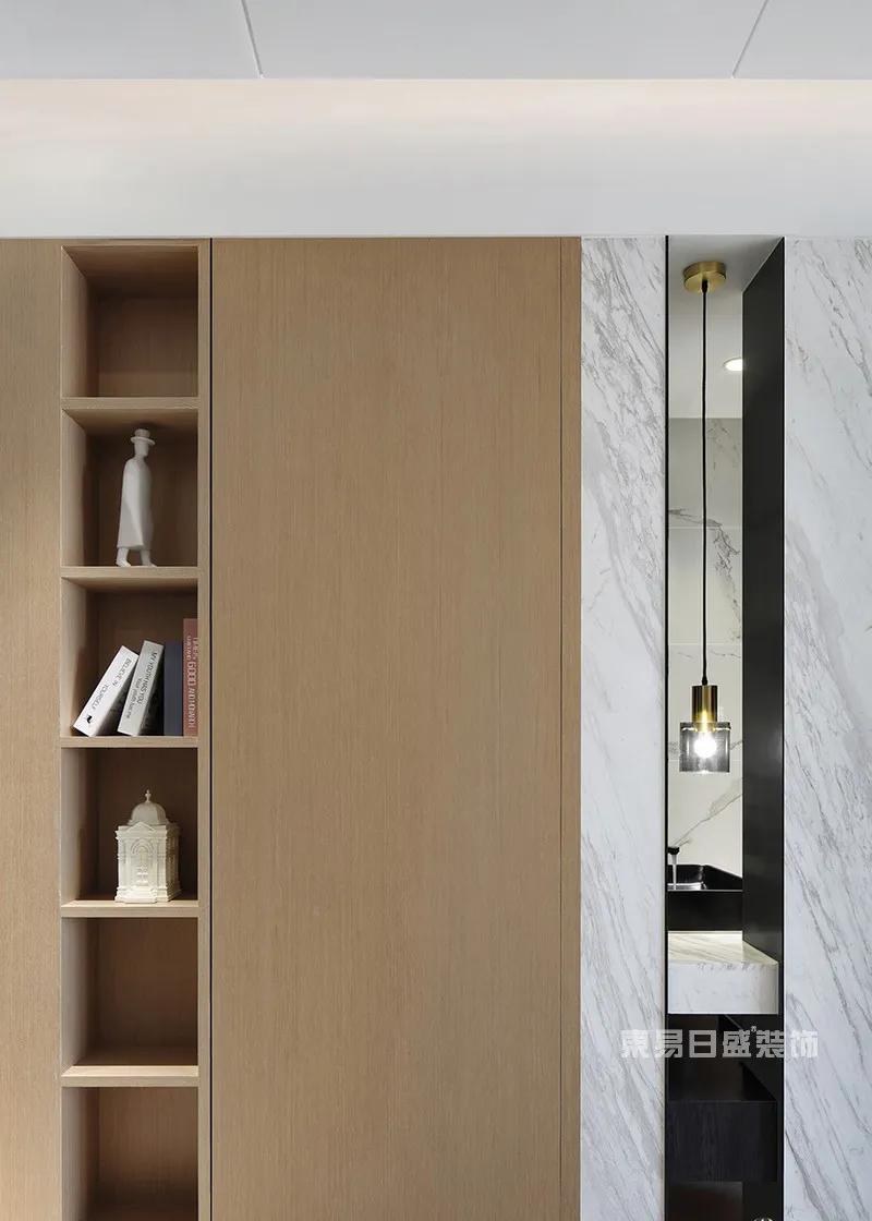 木饰面和大理石饰面的搭配,让空间兼具温暖明快和质感。收纳做的极为隐蔽,保持着空间的动和静,低调和张扬之间微妙的平衡,这也使空间的功能性更加多元化。