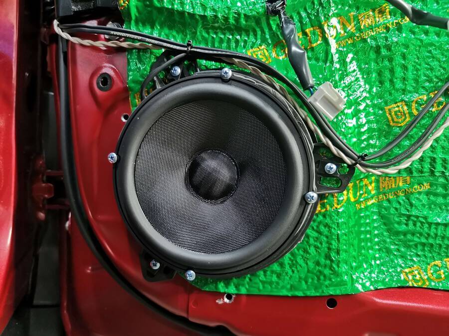门板隔音做好之后,开始进行音响改装,本次更换的声场喇叭都是原位安装的,不改动任何线路,所以对车内装饰不会有任何影响。