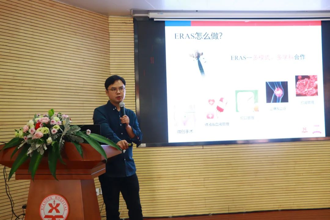 ▲中南大学湘雅医院汪龙主治医师分享“髋关节置换与翻修快速康复的湘雅经验”