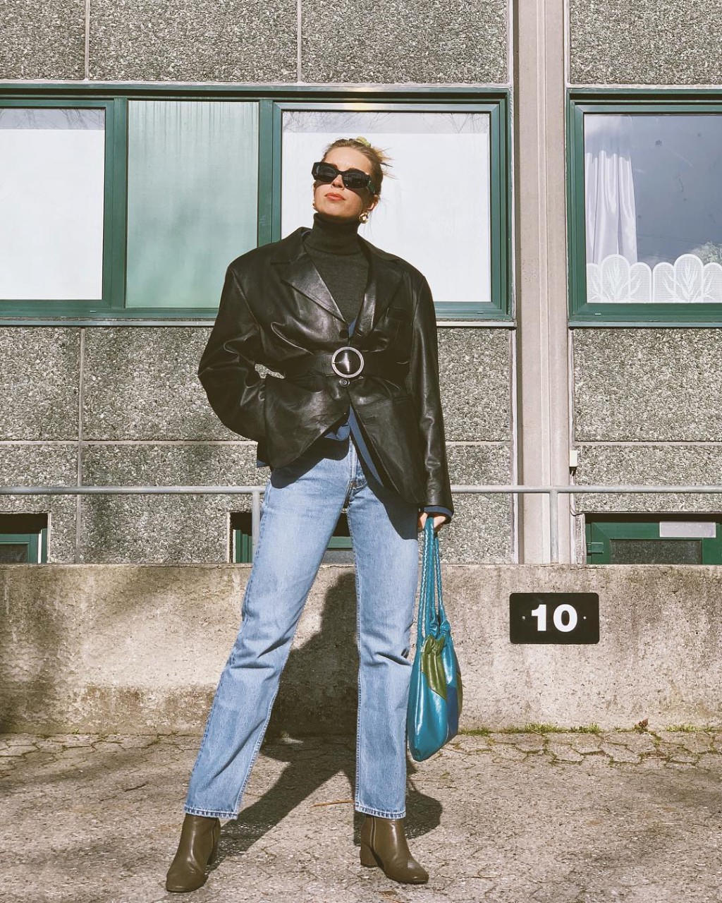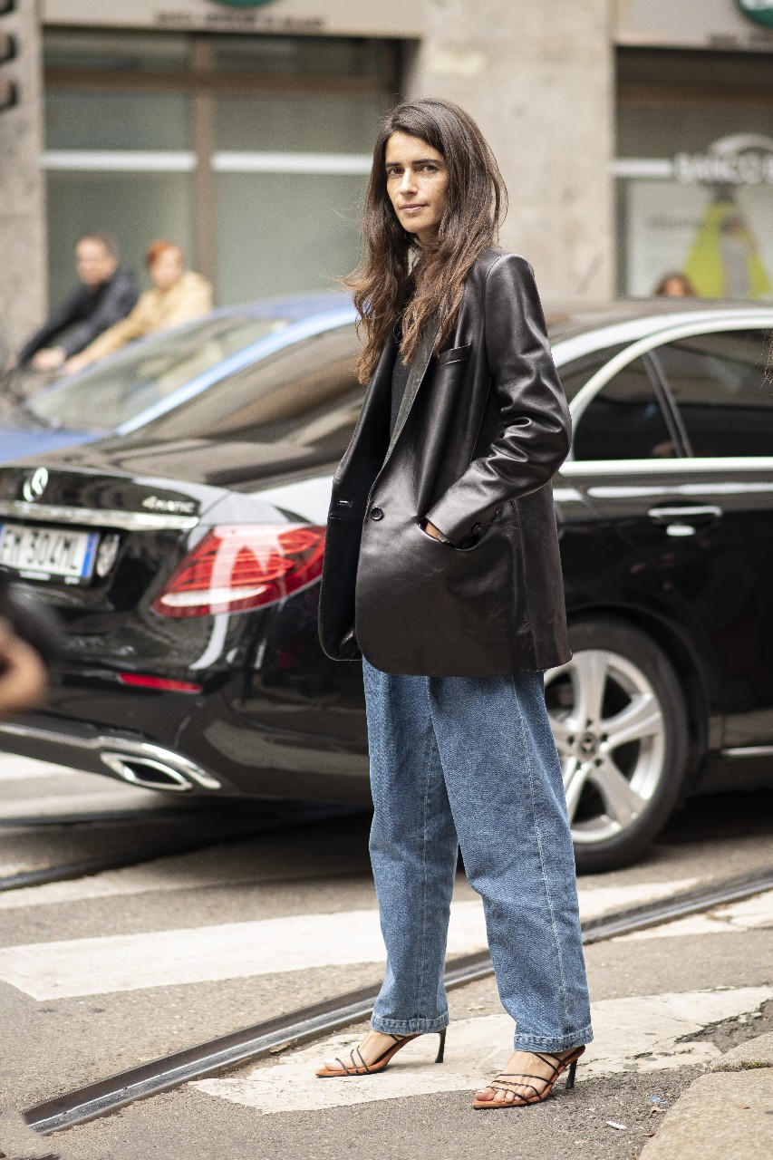 廓形的收腰皮衣能够打造上世纪80年代的复古感,如果还想更酷,搭配一副黑超的确是不错的凹造型神器。