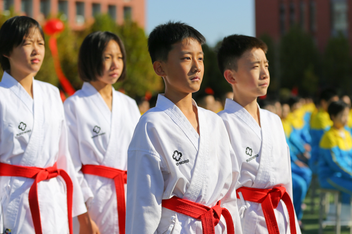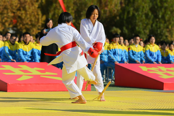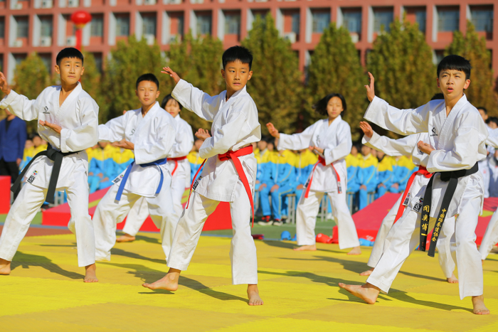 剪彩仪式上,首先由我校击剑队和跆拳道队的同学们进行体教融合成果展示。挥剑干净利落,如雷鸣之音;出拳气势磅礴,有雄浑之风,寒冬初至,但体教融合的种子早已扎根在每个志臻孩子的心中,他们对体育的热情却从未消减,他们对运动的追求之火从未熄灭!